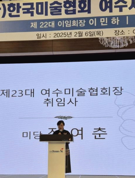 정여춘 지부장은 취임사를 통해 “여수 미술계가 활력을 얻고, 지역 예술가들의 창작 활동이 활성화되도록 지역 미술인 간의 네트워크를 확대하고, 다양한 예술 프로젝트를 통해 시민과의 소통을 확대하겠다”고 말했다.