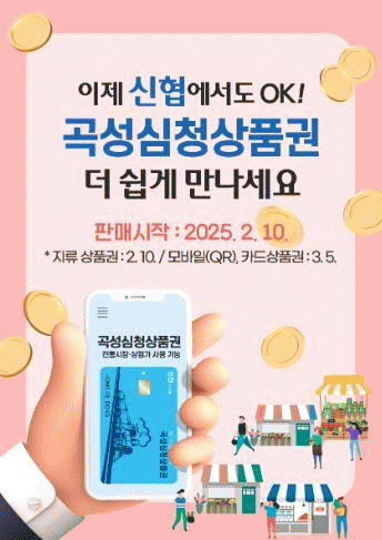 온누리신협 곡성지점은 지류형 심청상품권을 2월 10일부터 선 판매하고, 카드형 상품권은 내달 5일부터 판매할 예정이다.