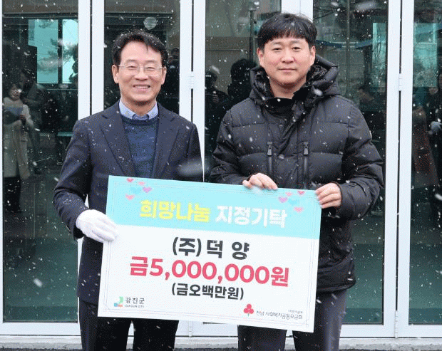 강진원 강진군수는 “강진 사랑을 실천해 주신 데 깊은 감사를 드린다. 앞으로도 강진의 버팀목이 돼 지역 발전에 이바지해 주길 바란다”며 “기탁한 후원금은 소중하게 쓰일 수 있도록 하겠다”고 말했다.