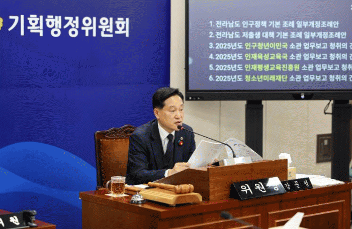 아울러 강 의원은 전남도가 앞장서 ▲대학교 청년 창업 프로그램 지원 ▲지역 대학생 장학금 지원 확대 ▲지역산업 대학 R·D기능과 연계하여 고도화 ▲공공산후조리원 적극 지원 ▲청소년 수련시설 확충 등을 집행부에 주문했다.