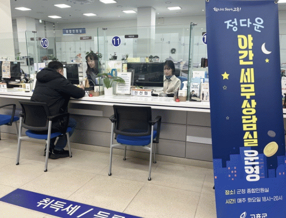 야간 세무상담실을 매주 화요일, 근무시간 종료 후 오후 6시부터 8시까지 2시간 동안 연장 운영된다.