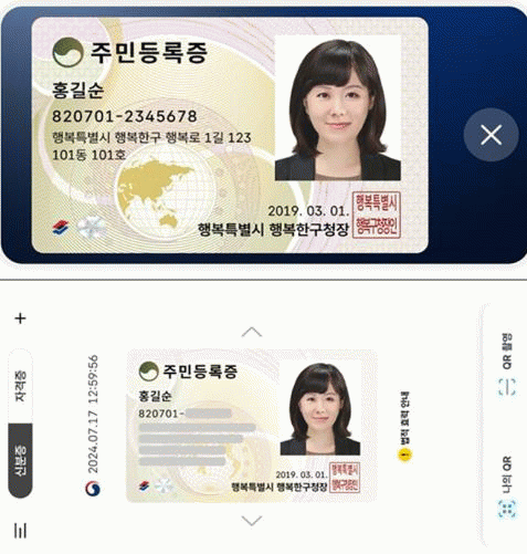 또 다른 방법은 실물 플라스틱 주민등록증을 소지하고 주민센터를 방문하여 모바일 주민등록증 발급용 QR 코드를 촬영하는 것이다.