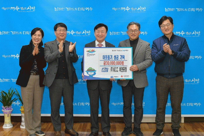 ㈜KCC 여천공장 한상만 공장장은 “이번 성금이 도움이 필요한 이웃에게 작은 희망이 되길 바란다”며 “앞으로도 지속적인 나눔으로 지역 소외계층을 위한 다양한 사회공헌활동을 전개하겠다”고 밝혔다.