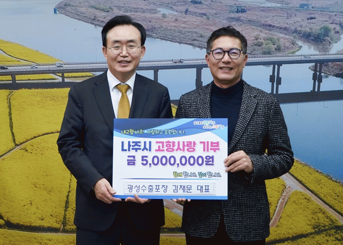 윤병태 나주시장은 “광성수출포장(주) 김재문 대표님의 꾸준한 관심과 기부에 깊은 감사를 드린다”며 “앞으로도 기업과 지역사회가 함께 공존하는 환경을 만들어 나가도록 최선을 다하겠다”고 전했다.