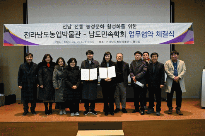 업무협약에 따라 전남도농업박물관과 남도민속학회는 박물관 소장 관련 자료 대여·연구·전시 및 학술행사의 공동 개최 등 활동을 추진할 계획이다.
