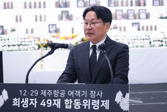 강 시장은 이날 무안국제공항 분향소에서 열린 ‘12·29 제주항공 여객기 참사 희생자 49재 합동위령제’에 참석해 “부모, 자식, 동료, 친구였던 당신들이 우리 곁에 없다. 우리는 여전히 서로 슬퍼하고 함께 위로하고 있다”며 이같이 말했다.