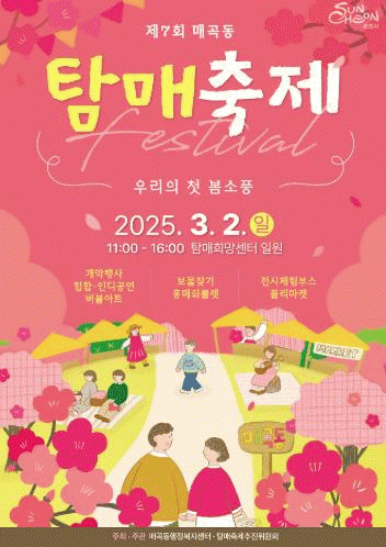 선순복 매곡동장은 “행사는 연기되었지만, 관광객에게 최선의 축제를 제공하기 위한 선택”이라며 “3월 2일 황금연휴, 매혹적인 선홍빛의 홍매화로 물든 매곡동 탐매마을에서 올해 첫 봄소풍을 즐기며 행복한 추억을 남기시길 바란다”고 말했다.