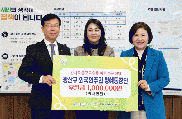 광산구 외국인주민 명예통장단은 지난 2023년 폭력 피해 아동 지원으로 100만 원을 기부하는 등 지역사회를 위해 매년 다양한 봉사와 기부 활동을 이어오고 있다.