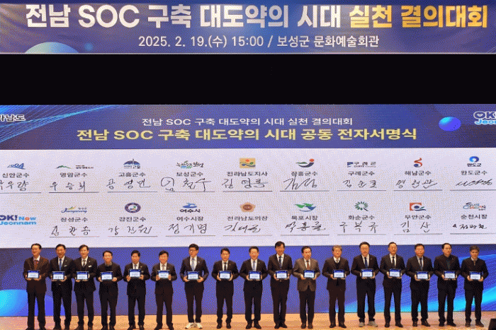 시에 따르면 이번 결의대회는 ‘전남 SOC 구축 대도약의 시대를 열자!’라는 슬로건 아래 김영록 전남도지사, 김태균 전남도의회 의장, 정기명 여수시장을 비롯한 16개 시군 시장·군수, 지역 주민 등 200여 명이 참석한 가운데 진행됐다.