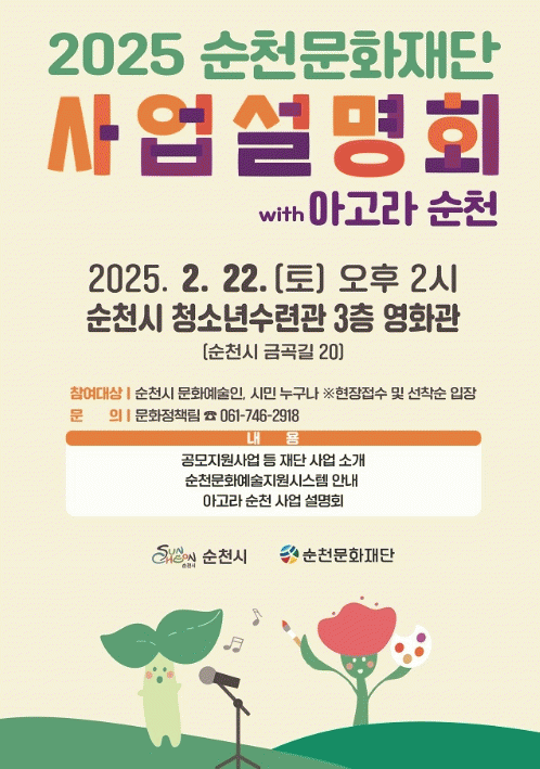 이번 설명회는 순천의 문화예술인과 시민들에게 2025년 주요 사업을 소개하고 문화도시 주체로서의 운영 방향을 공유하는 자리로써, 특히 올해는 두 가지 중요한 변화가 주목된다.