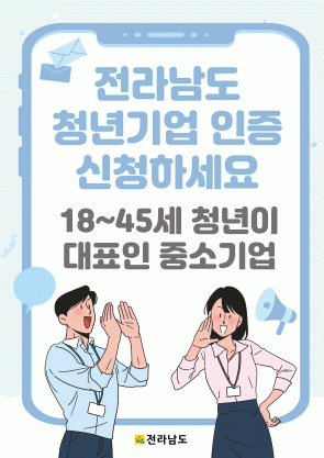 ‘전남도 청년기업 인증제도’는 청년인구의 유출을 막고, 기업하기 좋은 여건을 만들기 위해 18세에서 45세까지 청년이 운영하는 중소기업을 대상으로 연중 선발해 인증한다.