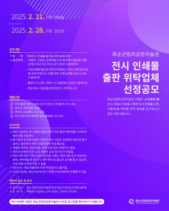 인쇄물 출판 위탁업체 선정 공모 제안서 접수 기한은 2025년 2월 21일 금요일부터 2월 28일 금요일 18시까지다.