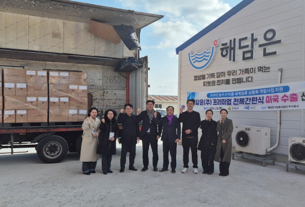 선적 물량은 해담은에서 생산한 전복톳밥, 전복죽, 매생이 전복죽 등 5개 품목 2만 개(약 10만 달러 상당)다.