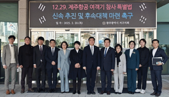 20일 서구의회에 따르면 제328회 제2차 본회의에서 안형주 의원이 대표 발의한 ‘12·29 제주항공 여객기 참사 특별법 신속 추진 및 후속대책 마련 촉구 건의안’을 채택했다.