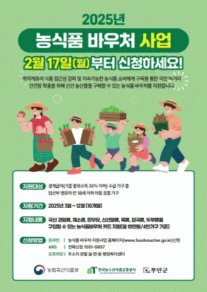 이재광 농업정책과장은 “이번 농식품 바우처 지원사업이 취약계층의 건강한 식생활을 지원하고, 지역 농산물 소비 촉진에도 기여할 것으로 기대한다”고 말했다.