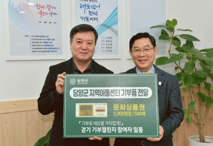군 관계자는 “이번 걷기 기부 챌린지에 많은 군민이 참여해 목표 걸음 수를 달성할 수 있었다”라며 “아이낳고 키우기 좋은 담양실현 및 지역사회에 건강도 챙기며 기부하는 가치있는 나눔 문화가 확산되길 바란다”고 말했다.