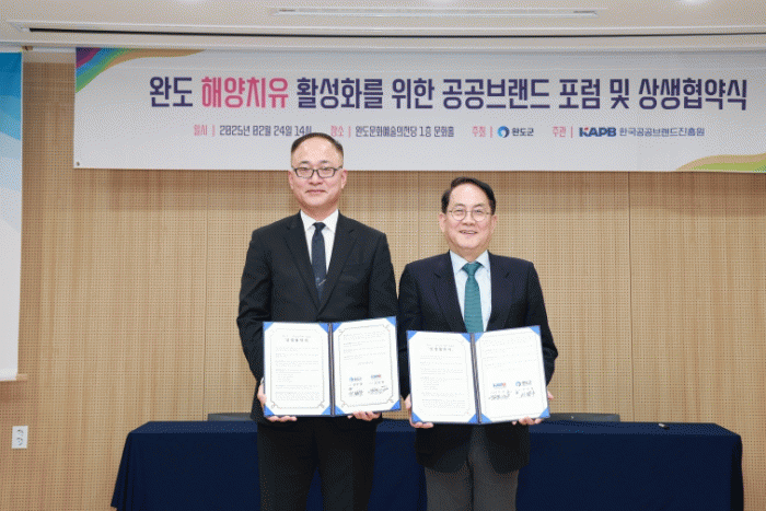 포럼에 앞서 완도군과 한국공공브랜드진흥원은 브랜드 가치 증대를 위한 업무 협약을 체결했다.