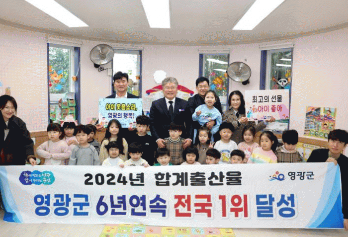 26일 통계청이 발표한 자료에 따르면 영광군의 합계출산율은 1.71로 전국에서 가장 높은 수치를 기록하여 전국 평균 0.75보다 두배 이상 높은 수치로, 전국적인 저출산 위기 속에서도 영광군이 추진해온 결혼 · 출산 정책을 비롯한 맞춤형 인구정책들이 실질적인 효과를 거둔 결과로 평가된다.