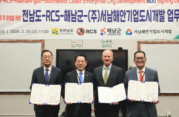 이번 업무협약은 명현관 해남군수와 이성옥 해남군의회 의장, 김영록 전남도지사, 토드 매트슨 RCS 이사장, BS산업 고형권 부회장과 함께 해남군과 전남도, BS산업 관계자들이 참여했다.