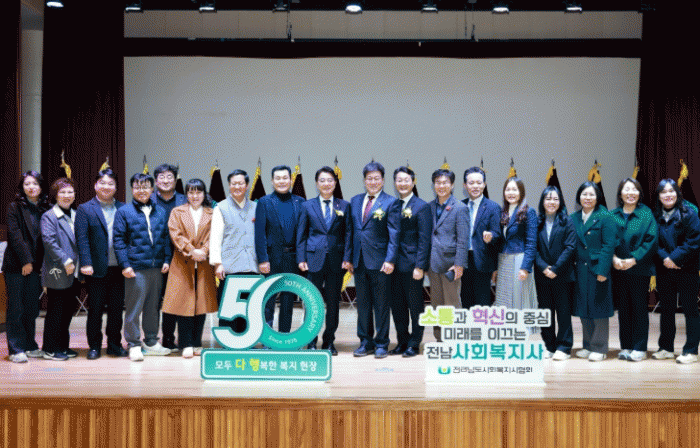 김태균 의장은 축사에서 “전남이 노령인구가 제일 많고 지역소멸이 현실적으로 다가오고 있어 대응책을 열심히 만들어 나가야 한다”며 “여기 계신 사회복지사들의 역할이 제일 크다고 생각한다”고 강조했다.