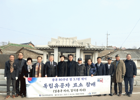 이번 독립유공자의 묘소 참배는 전남서부보훈지청과 함께 광복 80주년과 제106주년 3.1절을 맞이하여 우리 지역의 대표 독립유공자의 희생과 헌신을 기리기 위해 진행하였으며 영광군수, 전남서부보훈지청장(이향숙), 광복회 전라남도지부장(송인정), 영광군 보훈단체장을 비롯해 유족대표인 김주원, 김경신 등 관내 주민들이 참석했다.