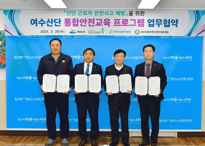 협약에 따라 여수시와 한국산업단지공단 전남지역본부는 통합안전교육 프로그램 운영 및 홍보를, 한국산업안전보건공단 광주광역본부는 안전교육 프로그램과 교육시설 제공을, 여수석유화학안전관리위원회는 산단 근로자가 프로그램에 참여할 수 있도록 지원할 예정이다.