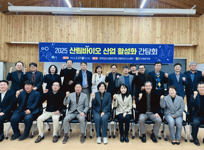 간담회에서는 오득실 원장이 산림바이오 거점단지 조성현황 및 운영계획을 발표하며 전남 산림자원을 활용한 산업화 가능성을 제시했다. 이어 참석자들은 바이오소재 개발과 대량 재배기술 확보 방안 등 산림바이오 산업 발전 전략을 심도 있게 논의했다.