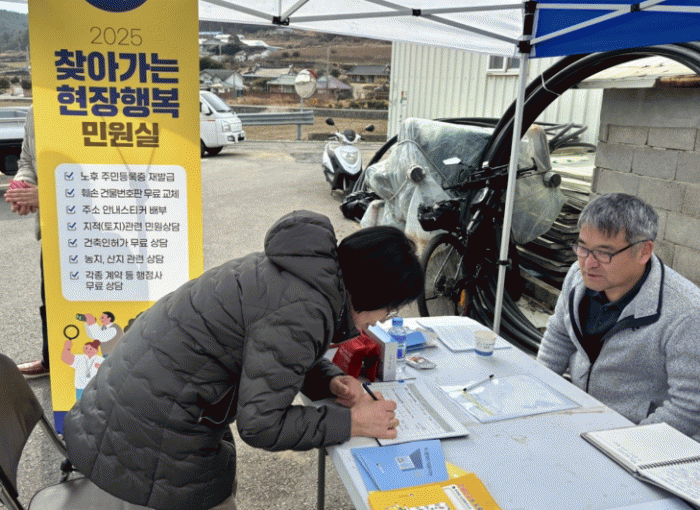 군 관계자는 “찾아가는 현장 행복민원실을 통해 군민들의 민원 편의를 더 높이고, 한발 더 나아가 군민 감동으로 다가서는 최상의 행정서비스를 제공하기 위해 최선을 다할 계획이다”고 말했다.