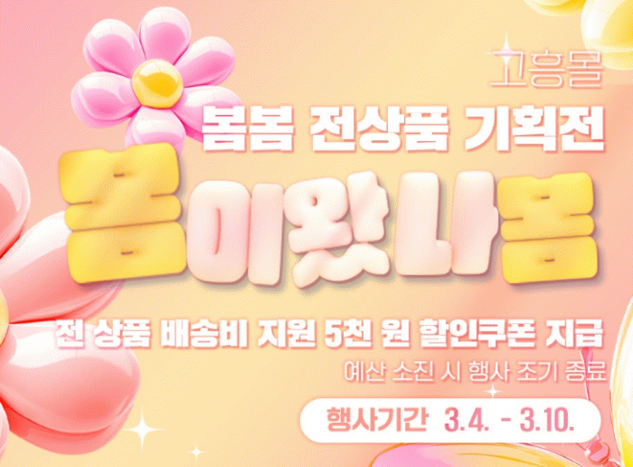 군 관계자는 “이번 봄맞이 할인행사를 통해 어려운 경제 상황속에서 소비자들의 부담을 덜어주고, 지역 농가에는 안정적인 판로를 제공하며, 고객 만족을 실현하고 고흥군 농수축특산물의 우수성을 알리는 한편, 지역 경제 활성화에 이바지하고자 한다”고 말했다.