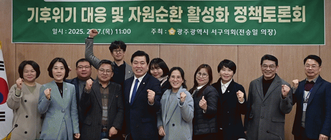 전승일 광주 서구의회 의장 주관으로 열린 이번 토론회는 '순환경제 특별회계 설치 및 운용 조례' 제정에 앞서 민·관의 의견을 수렴하기 위한 자리로 지난 1월 개최된 간담회에 이어 두 번째로 마련됐다.