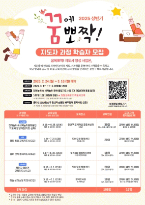 ‘꿈에뽀짝! 지도자 양성사업’은 20세 이상 광산구민을 대상으로 다양한 지도사 자격증 교육을 제공하며, 방과후 학교 강사나 마을 교육기관 강사로 활동할 수 있도록 지원하는 광산구 평생학습 사업이다.