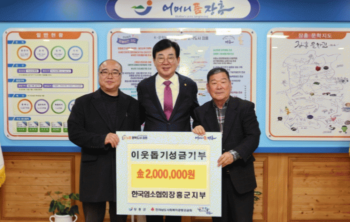 김성 장흥군수는 “어려운 이웃을 위해 함께해주신 염소협회 회장님과 회원분들께 감사드린다. 기부해주신 성금은 어려운 이웃의 복지향상을 위해 잘 사용하겠다.”고 밝혔다.