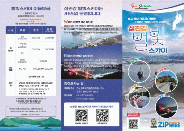 아울러 ‘섬진강 별빛 스카이’는 광양매화축제 입장료에 상응해 환급해 주는 ‘축제상품권’ 공식 사용처이기도 하기 때문에 부담 없이 짚와이어를 즐길 수 있는 절호의 기회다.