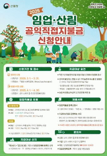온라인 신청 기간은 3월 1일부터 3월 31일까지이며 ‘임업-in 통합 포털에서 신청할 수 있다.