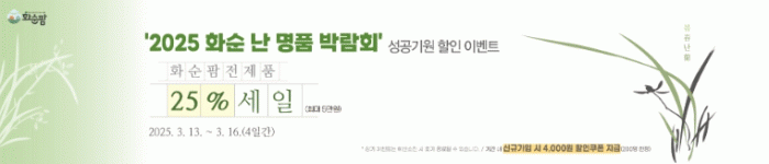 25% 할인 쿠폰은 전 품목에 최대 5만 원 한정으로 화순팜의 회원에만 적용되며, 본 이벤트 기간에 가입한 신규회원 중 선착순 200명에게는 4,000원 할인 쿠폰이 지급된다.