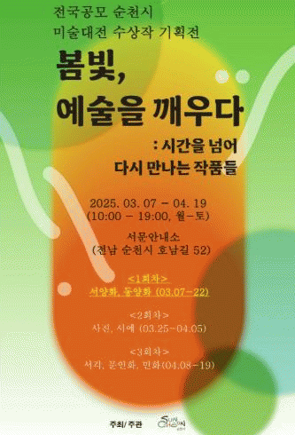 시 관계자는 “이번 전시를 통해 지역 예술을 경험하고 소통할 수 있는 기회가 되기를 바란다”며, “앞으로 계속되는 전국 공모 순천 미술대전에도 보석같은 작품들이 발굴되어 전시로 시민들을 삶이 문화예술로 다채로워지길 바란다”고 말했다.