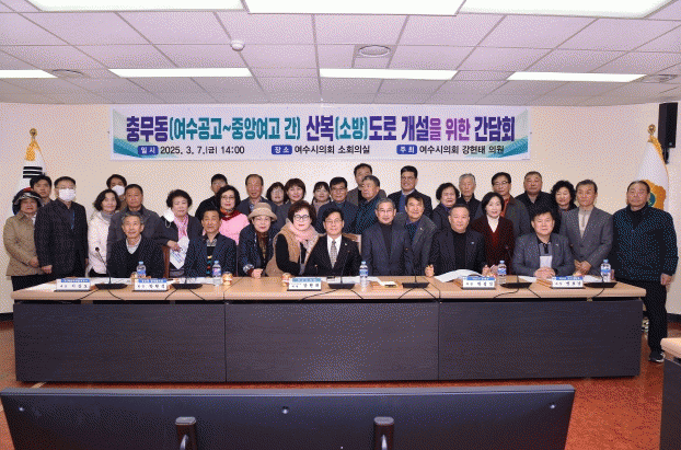 이번 간담회에는 강현태 의원을 비롯해 여수시 관계자, 이상도 (유)제일측량설계공사 대표, 박현석 충무동 통장협의회장 등 지역 주민 50여 명이 참석해 도로 개설의 필요성과 정책 추진 방향을 논의했다.