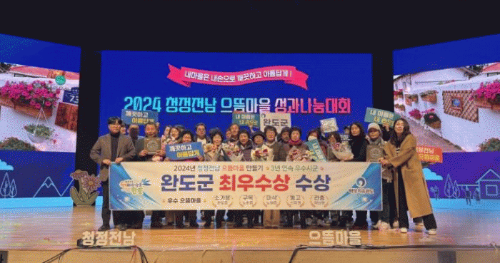 지난해에는 완도읍 소가용, 노화읍 구목·마삭, 신지면 동고, 약산면 관중 마을이 ‘우수 으뜸 마을’로 선정됐고, 2022년부터 2024년까지 3년 연속 우수 시군으로 선정됐다.