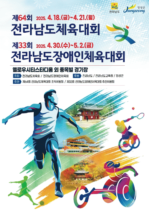 한편, 제64회 전라남도체육대회는 4월 18일부터 21일까지 옐로우시티스타디움 등 종목별 경기장에서 열린다.