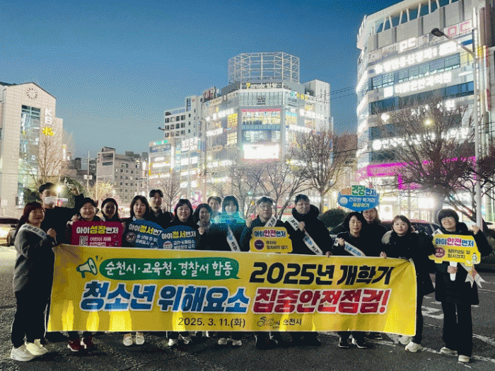 이번 점검은 순천시를 비롯해 순천경찰서, 교육지원청, YWCA 청소년유해환경감시단 등 20여 명이 참여하여 교통안전, 유해환경, 식품안전, 제품 안전, 불법 광고물 등 5개 분야를 중점적으로 확인했다.