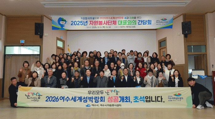 간담회 이후에는 자원봉사자와 함께하는 ‘2026여수세계섬박람회 성공개최 퍼포먼스’와 ‘온기나눔 캠페인’이 진행돼 적극적인 자원봉사 참여와 따뜻한 나눔 문화 확산에 공감대를 모았다.