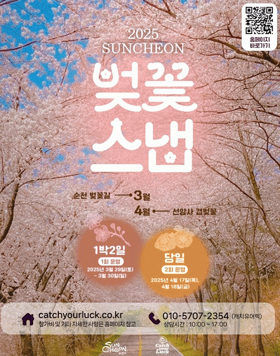 시 관계자는 “벚꽃 스냅 투어는 봄꽃 가득한 순천의 매력을 알리고, 촬영 스팟마다 담긴 지역 이야기를 들려주기 위해 기획한 상품으로 많은 분들의 관심과 참여 부탁드린다”고 말했다.