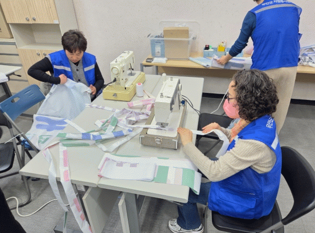 자원봉사자들은 폐현수막을 홀로 생활하시는 어르신들께 전달할 온기 나눔 가방으로 재탄생시켰다.