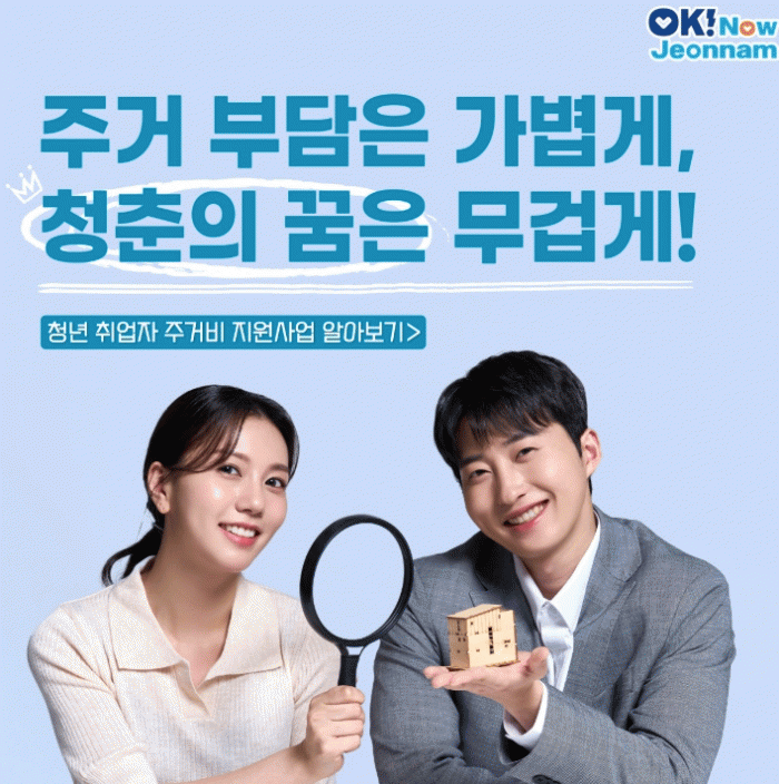 지원 대상은 무주택자로서 신청일 현재 전남에 주소를 두고 전세 5천만 원 이상 또는 월세 60만 원 이하의 주택을 임차해 거주하는 일하는 청년(1980~2007년 출생자)이다.