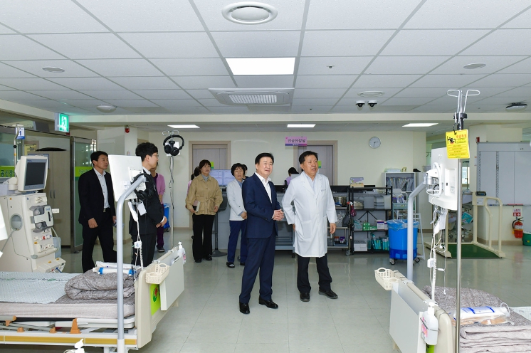 정 시장은 병원 현장을 꼼꼼히 살피고 병원장과 이사장, 간호부장 등과 간담회 자리를 마련, 야간 응급실 이용 시 환자들의 안전을 위한 병원 인근 보안등 설치 등에 대한 건의사항을 청취했다.