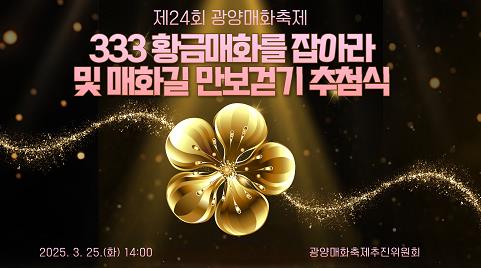 한편, ‘333 황금매화를 잡아라’ 추첨이 끝나면 바로 ‘매화길 만보 걷기’ 경품 추첨이 이어질 예정이다.
