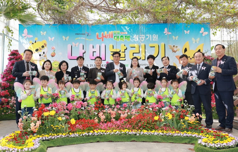 참석자들은 제27회 나비대축제의 성공적인 개최를 염원하며 함평군농업기술센터에서 직접 키운 호랑나비와 배추흰나비 등 2,025마리를 하늘로 날려 보냈다.