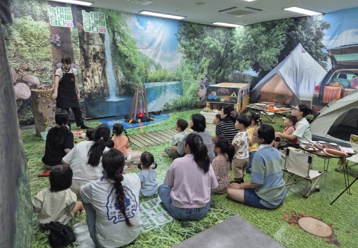 ‘팝업놀이터’는 농촌지역 특성상 문화‧놀이 활동에 제약이 있는 영유아들을 위해 기획된 프로그램으로, 당일 하루만 운영되는 특별한 놀이 공간이다. 행사장은 ‘영아 놀이터’, ‘유아 놀이터’로 구분돼 연령별 발달 특성에 맞춘 체험 활동이 펼쳐졌다. 와글와글 동물농장, 한양저잣거리, 차박체험 등을 주제로 다채로운 활동이 아이들과 학부모들에게 큰 호응을 얻었다.