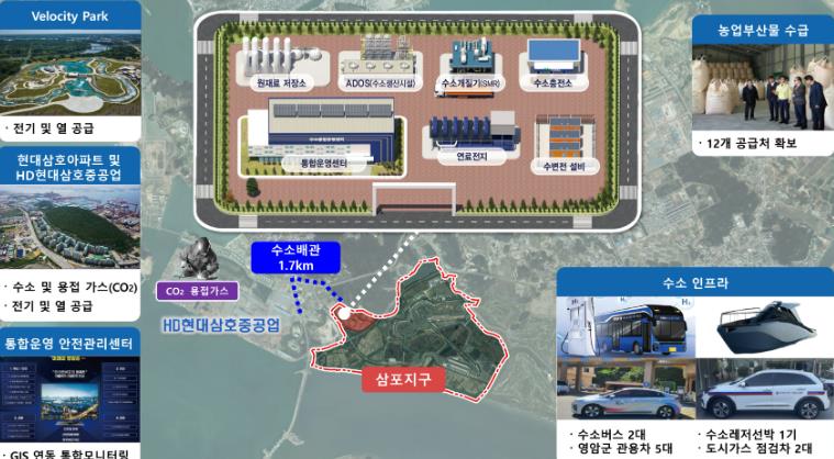 주요 사업으로는 왕겨·볏짚 등 농업부산물을 활용해 연간 730톤의 청정수소를 생산하고, 1.7km 수소 배관을 구축하며 인근 아파트와 삼포지구 숙박시설에 연료전지 발전설비를 설치한다.