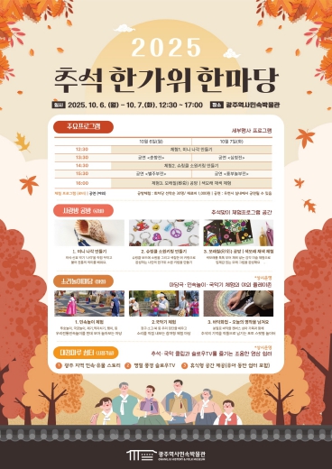 임찬혁 역사민속박물관장은 “추석을 맞아 고향을 찾는 귀성객과 시민들이 풍요로운 한가위를 보내시길 바라는 마음으로 행사를 준비했다”며 “온 가족이 박물관과 중외공원에서 즐거운 시간을 보내며 추억을 쌓길 바란다”고 말했다.